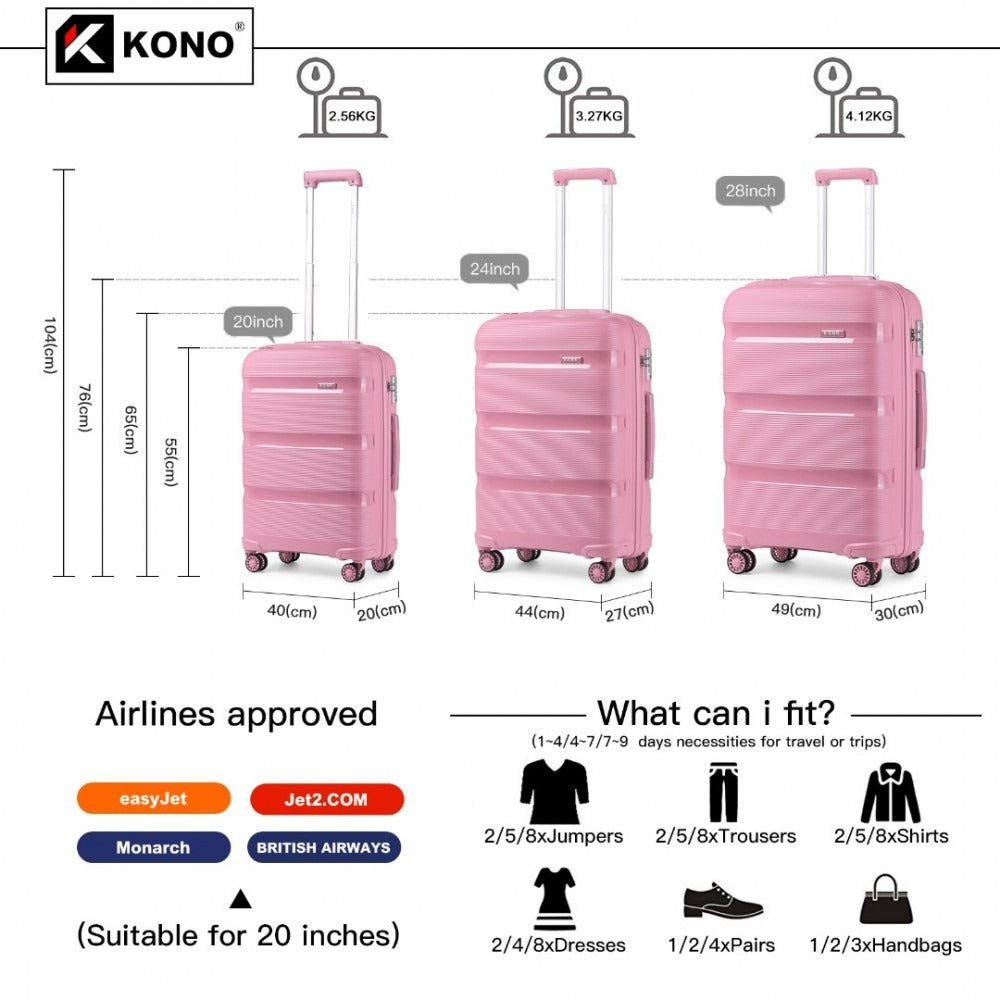 Turn heads when on the move with the super trendy Kono K2092 suitcase. The Kono K2092 model of PP suitcase are a high quality polypropylene material made for frequent travelers.