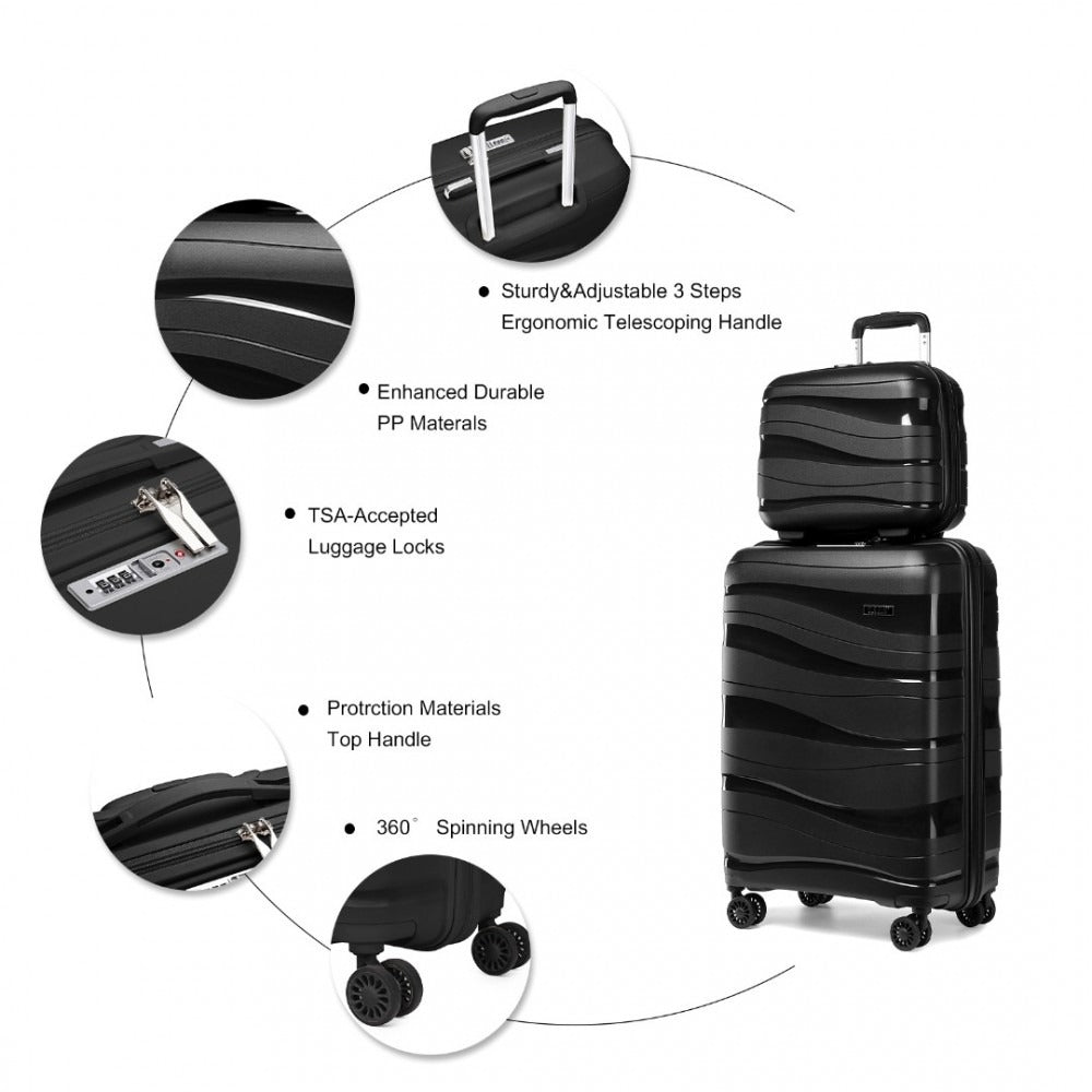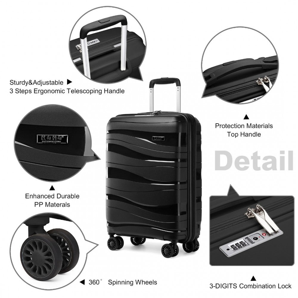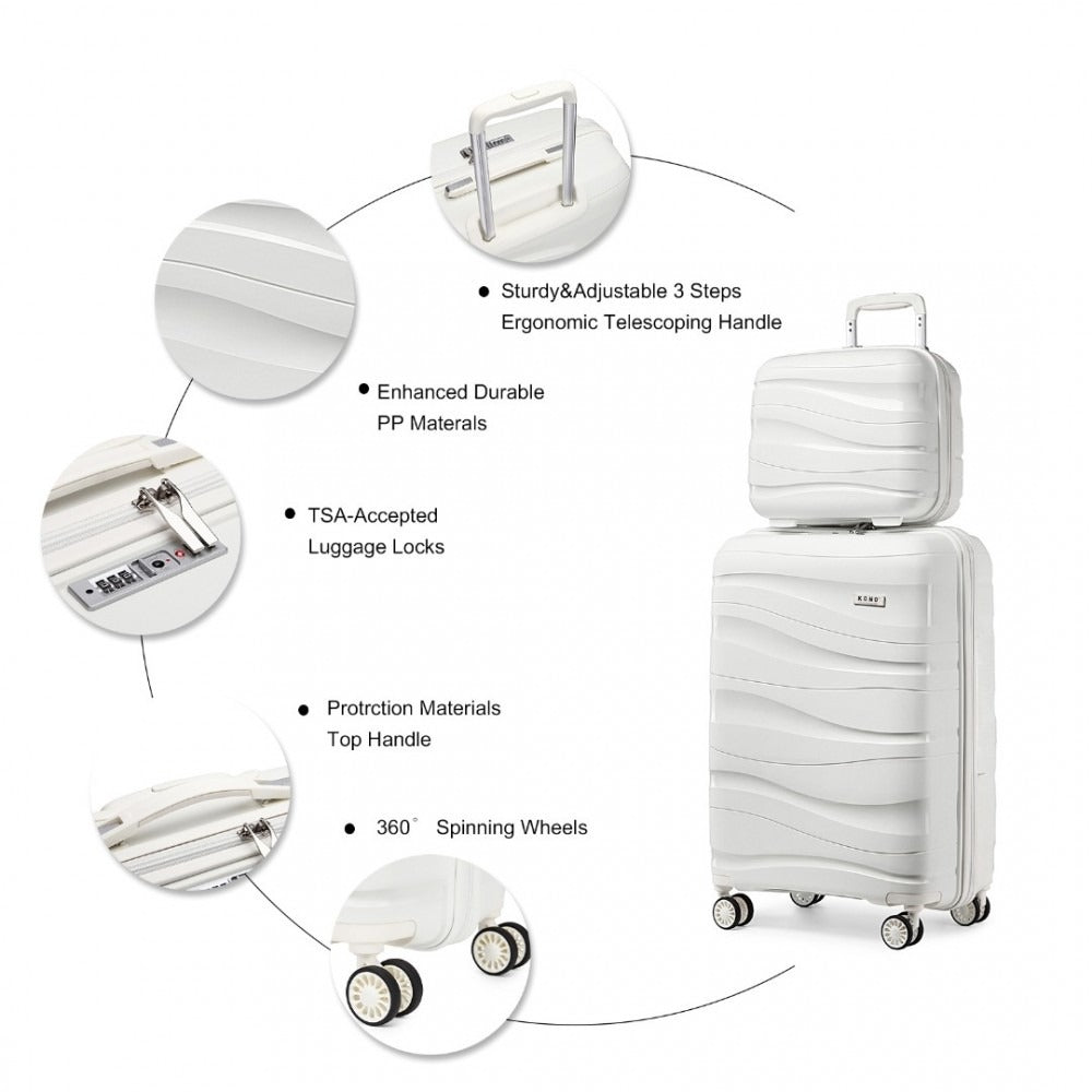 Turn heads when on the move with the super trendy Kono K2094L suitcase. The Kono K2094L model of suitcase is made with 100% Polypropylene material for hard shell, which make the luggage more durable, lightweight and impact-resistant. There are 4 suitcase sizes available as well as two different suitcase sets, a set of 2 and a set of 4.