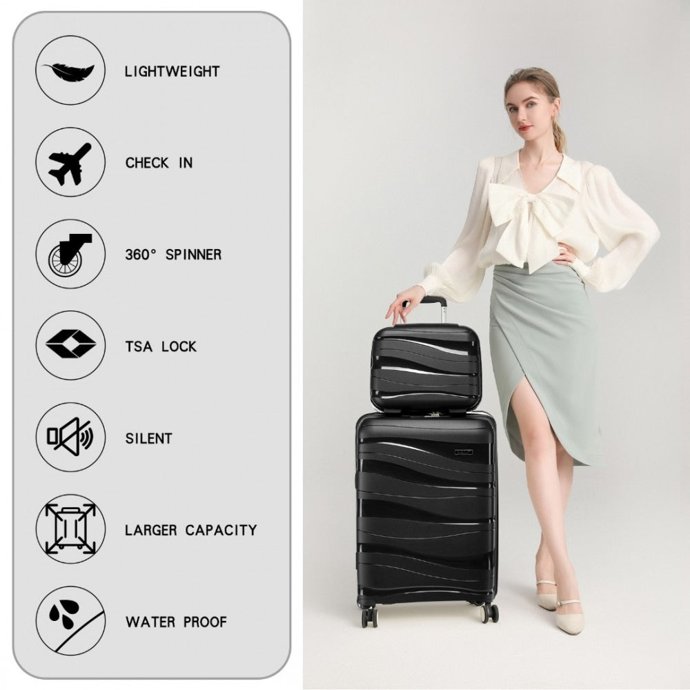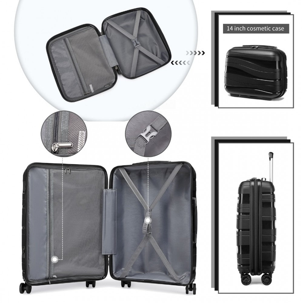 - Outer material: premium quality polypropylene for a strong and durable suitcase