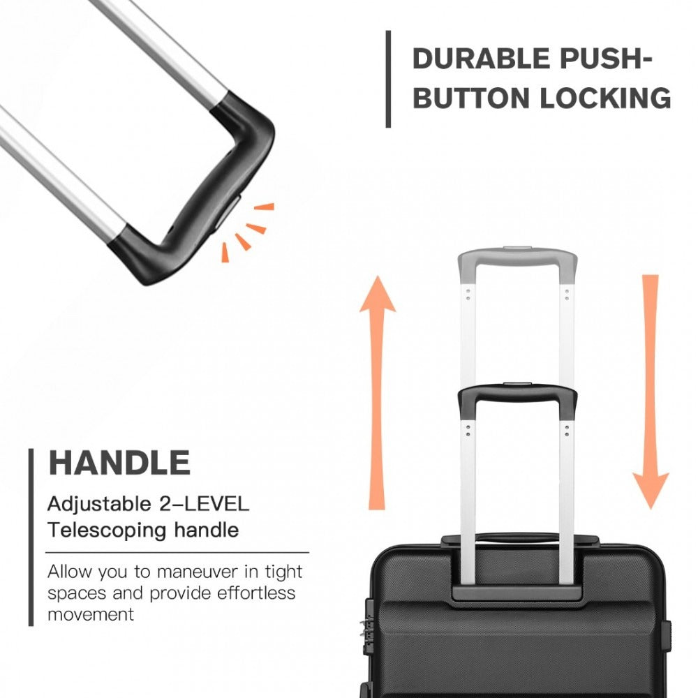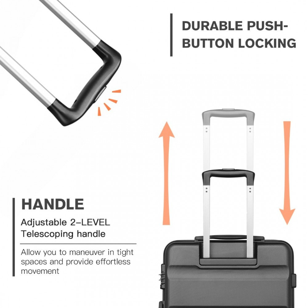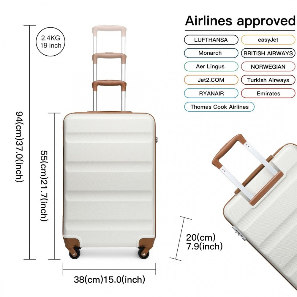 The Kono K2191 model suitcase has all the features you would expect from a top of the range suitcase.Β The 19 inch version cabin luggage is suitable for many airlines carry on luggage including Monarch, EasyJet, British Airways, Jet2, Lufthansa, Norwegian, Turkish Airlines, Ryanair and Aer Lingus and it comes with a TSA combination lock for added security. It has a retractable aluminium handle as well as a side handle for easy carrying. The 4 wheels are multi-directional so it can easily glide in any direction making it super easy to transport. It comes with internal straps to secure your luggage and it is a lightweight case at just over 2.4g.