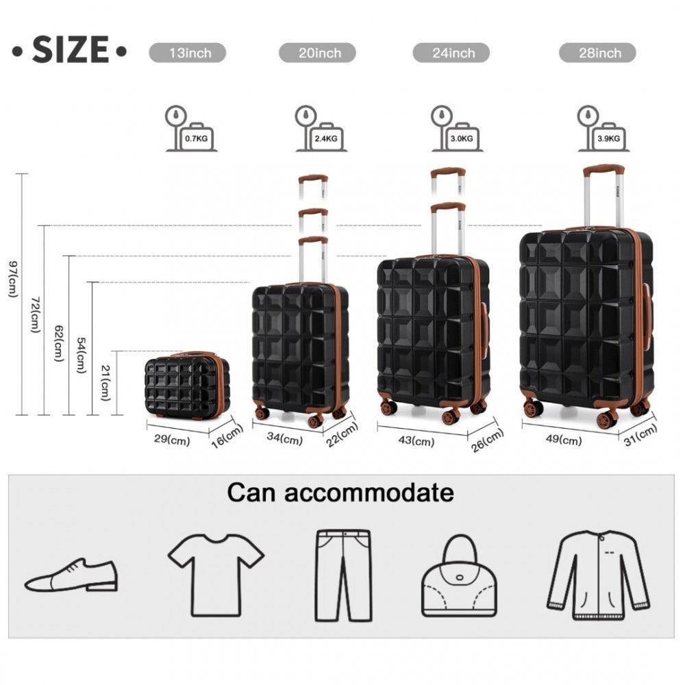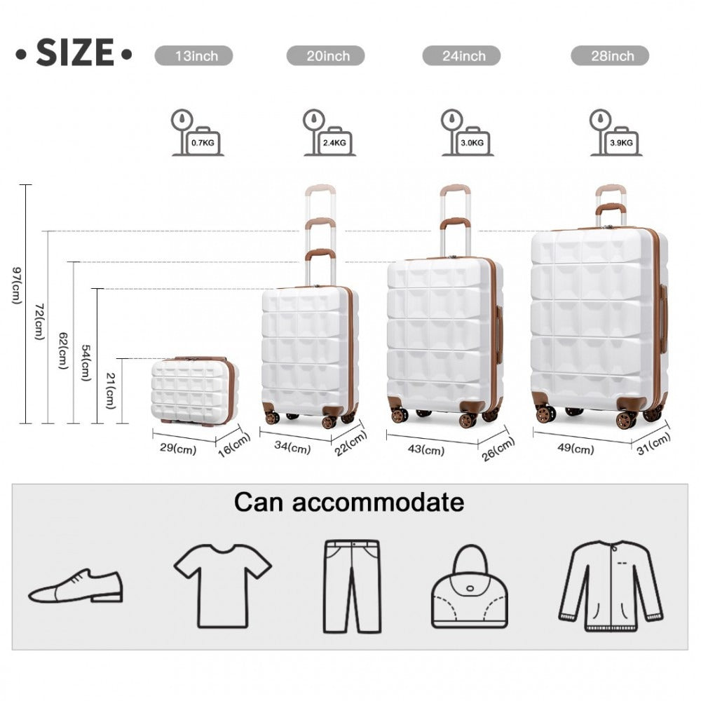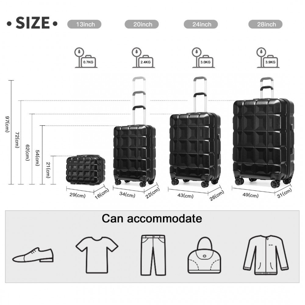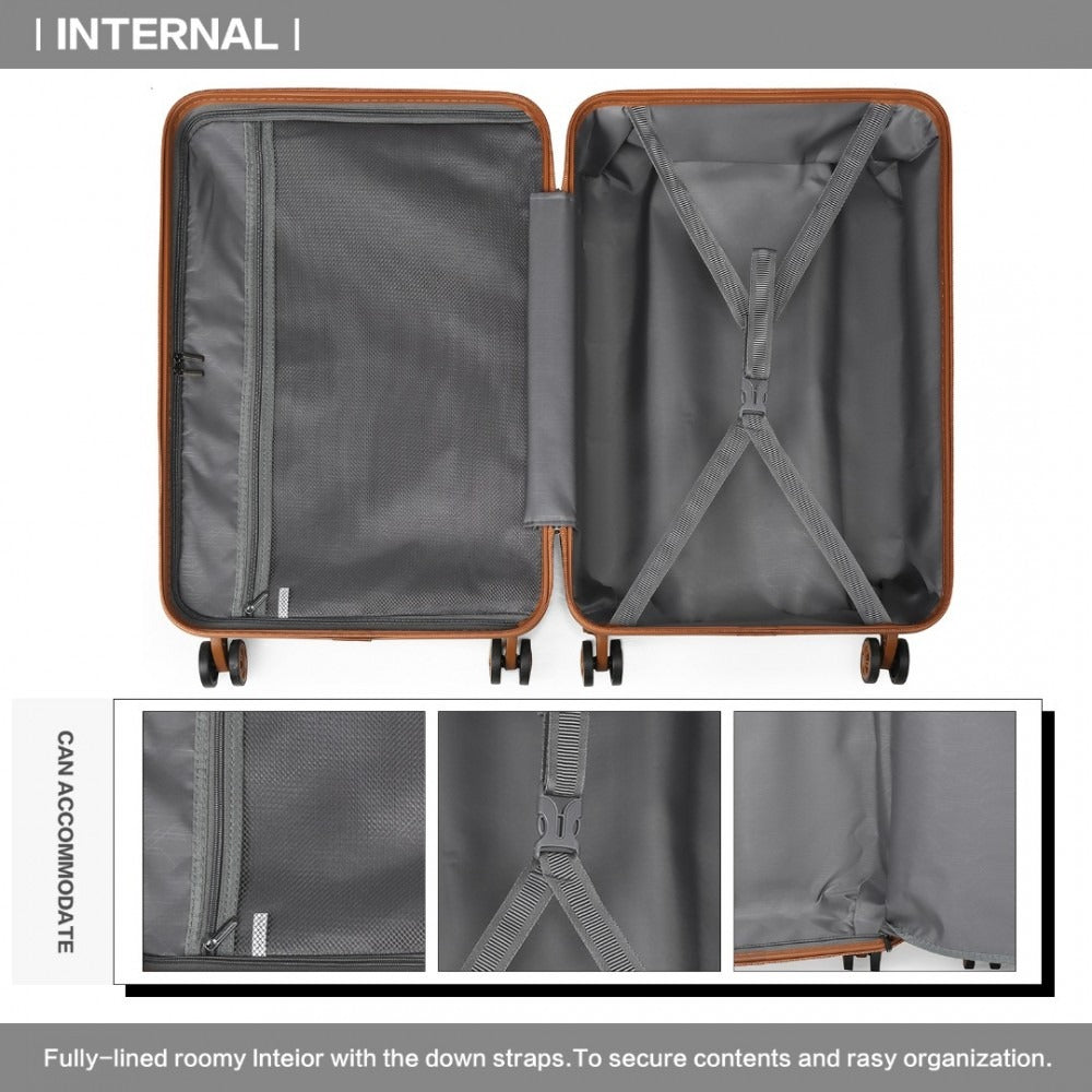 The Kono K22292 model suitcase has all the features you would expect from a top of the range suitcase. The 20 inch version cabin luggage is suitable for many airlines carry on luggage including Monarch, EasyJet, British Airways, Jet2, Lufthansa, Norwegian, Turkish Airlines, Ryanair and Aer Lingus and it comes with a TSA combination lock for added security. It has a retractable aluminium handle as well as a side handle for easy carrying on the 24 and 28 inch sizes. The 4 wheels are multi-directional so it can easily glide in any direction making it super easy to transport. It comes with internal straps to secure your luggage and it is a lightweight cabin suitcase at just over 2.4g.