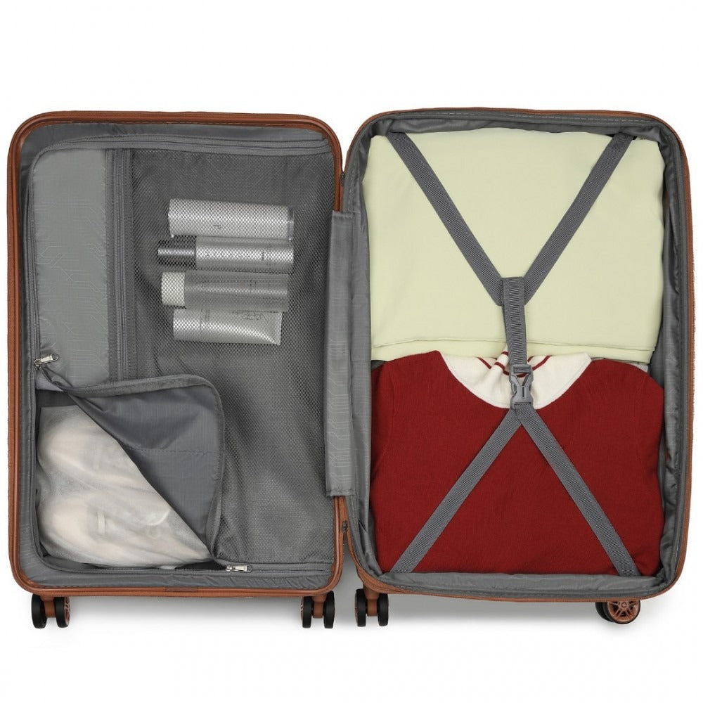 Travel in style and confidence with this chic K2482 suitcase range. Its sleek horizontal engraving design catches the eye, while its robust construction ensures it stands up to the rigors of travel. The bag's lightweight, eco-friendly build resists scratches and impacts, and its flexible structure can bend without leaving marks. Perfect for both short and long trips, it combines durability with sophisticated design.