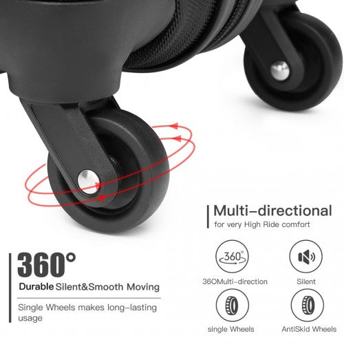 It features an adjustable telescopic handle, a secure TSA-approved lock, and four 360-degree rotating wheels for smooth manoeuvrability.